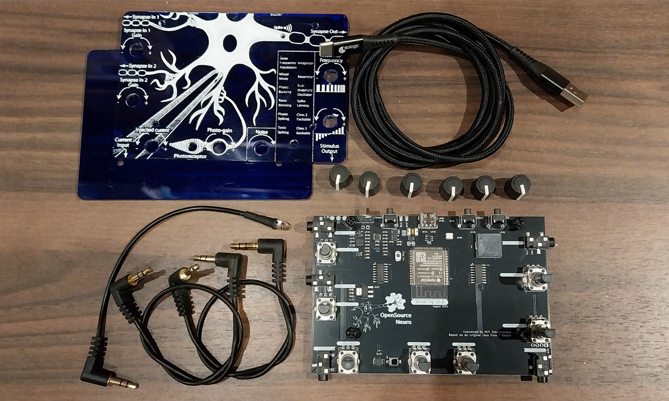 Spikeling is an open hardware + software platform for hands-on neuroscience teaching and outreach, built to make spiking neuron dynamics interactive, measurable, and reproducible.